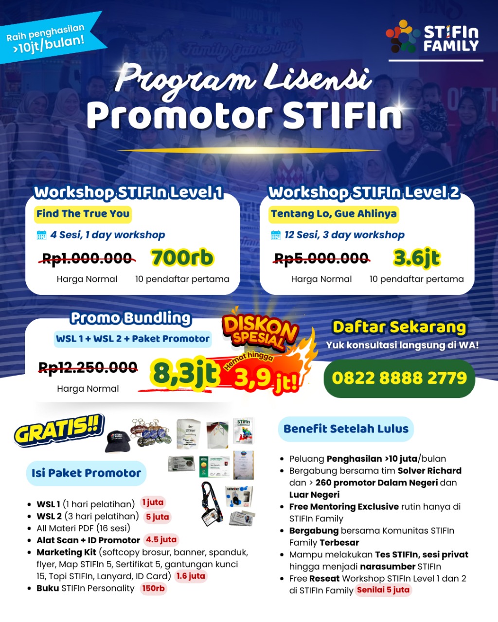 Biaya investasi yang Anda keluarkan untuk menjadi Promotor dalam mengikuti Workshop STIFIn Level 1 dan 2 akan menjadi tambahan keilmuan dan pengetahuan yang Anda bisa terapkan dalam kehidupan sehari – hari